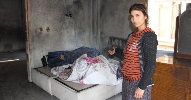 Eşi sandık işinde çalışan, eşinin ailesi ise sepetçilikle geçimini sağlayan Işıl Acer 17 Aralık Cuma günü öğleden sonra akrabalarıyla kavga ettiklerini söyleyen genç anne, eşi çalıştığı için evde olmadığını dile getirerek, “Bu şahıslardan korkumdan, çocuklarımın can güvenliği yoktu, o gece uyumadım. Gece saat 03.00’te öz dayılarım arabayla geldiler, dışarıdan bana hakaret ederek, elinde benzin bidonuyla beni canımla ve çocuklarımla tehdit ettiler. Kapıyı içeriden kilitledim, yatak odamdan kaçtım. Yarım saat sonra komşularım bana ‘evin yanmış’ dediler. Dünyam başıma yıkıldı. Çocuklarım yanabilirdi. Benim içeride olduğumu biliyorlardı, gördüler zaten. Kapıya bir-iki defa vurdular, ‘çık dışarıya, seni yakacağız’ dediler, çocuklarımı tehdit ettiler. Daha önce de bunlar benim 3 aylık bebeğimi düşürdüler” ifadelerini kullandı.