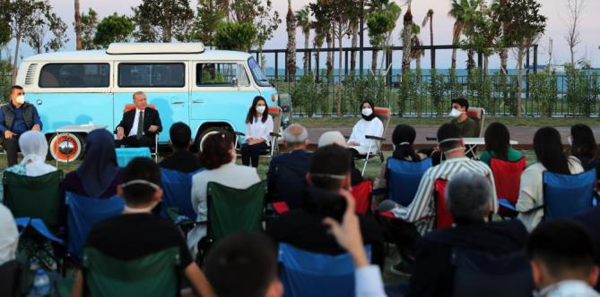 Gençlerle buluşmada konuşan Cumhurbaşkanı Recep Tayyip Erdoğan, “Üniversitelerdeki öğrenci kulüpleri önemli bir imkandır. Sizlerden spordan teknolojiye sosyal sorumluluktan fikri gelişime kadar geniş bir yelpazedeki öğrenci kulüplerinden aktif bir şekilde yer almanızı istiyorum. Hayatınızı belki de en güzel yıllarını geçireceğiniz üniversite yıllarını özlemle yad etmek için her günün dolu dolu geçireceğinizi düşünüyorum. Üniversite yılları gençlerimizin fikri donanımlarını güçlendirdikleri, siyasi görüşlerini şekillendirdikleri dönemlerdir. Sizlerden istirhamım asıl kaynaklarına inip araştırmadan sorgulamadan, bilhassa da kendi medeniyetinizi kültürünüzü tarihinizi tam manada öğrenmeden siyasi kimlik sahibi olmayın. Medya ve sosyal medya gibi büyük bir kısmı yalan veya saptırma üzerine kurulu manipülasyon araçlarıyla, popüler sanatçı, fenomen, şovmen bu türlerden kişilerin yönlendirmesiyle asla fikir ve tutum belirlemeyin. Hani o meşhur kalıpla ifade edecek olursak, önce kendiniz olun, önce kendinizi tanıyın, önce kendinizin de içinde bulunduğu medeniyet ve kültür ikliminiz tanıyın. Sonra diğer her şeyi öğrenin. Ondan sonra fikir ve siyasi safınızın adını koyun, bir diğer önemli husus yabancı dil eğitimine önem vermenizdir. Yabancı dil eğitimin önce iletişim, ardından da bilgi seviyenize göre akademik standartlarda çözmeden hayata başlarsanız, kendinizi bir adım geride bulursunuz. Hatta bir yabancı dil dahi yeterli olmuyor, ikinci ve üçüncü yabancı dil bilmek, tercih sebebi haline geliyor. Yeni bir dil öğrenmek aynı zamanda yeni bir dünyayı yeni bir kültürü yeni bir hayat ve düşünce biçimini de öğrenmek demektir. Meseleye bu açıdan baktığınızda yabancı dil öğrenmenin size okuldaki ihtiyaçların çok ötesinde bir katkı sağlayacağını göreceksiniz. Üniversite eğitiminin size mesleki bir formasyon kazandırmanın ötesinde ilim ve dolayısıyla hayatın bütün boyutlarının kapılarını açan bir işleve sahiptir” diye konuştu.