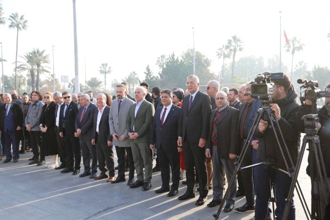 Cumhuriyet Meydanında gerçekleştirilen törene MGC Başkanı Kaya Tepe ile MGC yönetim kurulu üyeleri, Akdeniz Belediye Başkanı Mustafa Gültak, Mezitli Belediye Başkanı Neşet Tarhan, TRT Çukurova Bölge Müdürü Fatih Doğru, Mersin Serbest Muhasebeci Mali Müşavirler Odası (MSMMMO) Başkanı Emin Levent Türkili ve gazeteciler katıldı. Saygı duruşu ve İstiklal Marşının okunmasıyla başlayan törende MGC Başkanı Kaya Tepe çelenk sundu.
