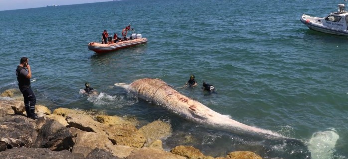 Balığın ölü olarak en az 10 gün denizde kaldığının altını çizen Ayas, “Yaptığımız boy ölçümünde 13.5 metre boyunda olduğunu belirledik. Tabi burada insanlar da korkmamalı. Çünkü bu tür balıklar süzerek beslenen canlılardır. Bunlar insan için bir tehdit değildir. Zaten bunlar kıyıda bulunmaz. İnsanların denizi kullandığı alanlarda bu balıkları görmeyiz. Bu balıklar Doğu Akdeniz’in orta kısımlarını kullanırlar. İnsan etkileşimleri neredeyse sıfırdır. Sadece bazen balıkçılar tarafından görülebilir. Bunun dışında fin balinaları tehlikesizdir. Tabi bu kadar kıyaya gelmesi için bazı düşüncelerimiz var. Özellikle bu pandemi zamanında gemi ticaretinin, balıkçılık faaliyetlerinin azalmasından kaynaklı olarak biraz daha kıyıya yanaşmış olabilirler. Zaten gemi yollarında olduklarından bu çarpışma meydana gelmiş diye düşünüyoruz” ifadelerini kullandı.