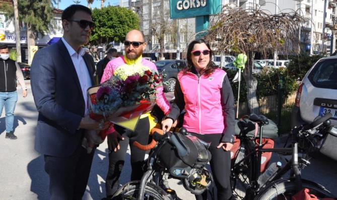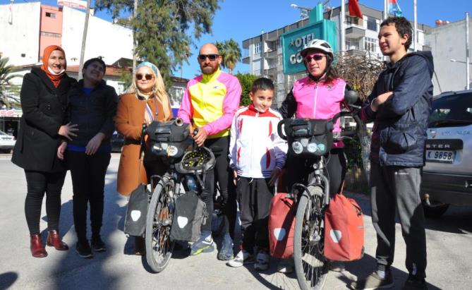 Fransa'dan 8 bin 500 kilometre pedal çevirip down sendromlu ve otizmli çocuklara dikkat çekmek için bisikletleriyle Türkiye’ye gelen Fransız çift, Mersin’in Silifke ilçesine geldi.