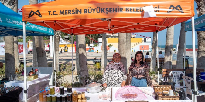 Mersin Büyükşehir Belediyesi’nin Özgecan Aslan Barış Meydanı’nda açtığı ‘Üretici Kadın Stantları’nda, Mersin’in üretici kadınları yeniden ürünlerini sergiledi. Kadın üreticilere bu kez Kültür ve Turizm Bakanlığı Somut Olmayan Kültürel Miras Taşıyıcıları da eşlik etti. Stantlarda gıda ürünlerinin yanı sıra cam üfleme ürünler, naht sanatından tablolar, su kabağı oyması hediyelik eşyalar, telkâri takılar ve deri işlemesi eşyalar gibi çok sayıda ürün yer aldı.