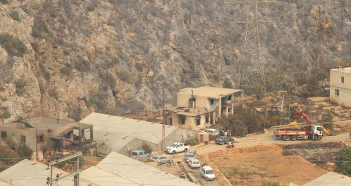 Edinilen bilgiye göre, dün sabah saatlerinde Mersin’in Aydıncık ilçesine bağlı Pembecik Mahallesi’nde başlayan orman yangını, rüzgarın etkisiyle kısa sürede büyüdü. Bugün sabah saatlerinde Aydıncık merkeze kadar inen yangın dolayısıyla birçok mahalle boşaltılırken, çok sayıda ev ve serada yanarak kül oldu. Özellikle Aydıncık Yenikaş Mahallesi’nde etkili olan yangın dolayısıyla ormanlık alan tamamen kül olurken, birçok ev ve serada hasar meydana geldi. Sabahın erken saatlerinde evlerinden kaçmak zorunda kalan bölgedeki vatandaşlar, yangının kontrol altına alınmasıyla evlerine döndüklerinde acı resimle karşılaştılar. Kiminin serası kiminin evi kiminin ise hayvanları yanmış durumda olurken, AFAD ve Kızılay ekipleri de vatandaşlara su ve yiyecek desteğinde bulunuyor. Ayrıca ekipler vatandaşların zarar tespit çalışmasına da başladı.