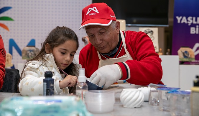 Farklı jenerasyonların bir araya getirildiği atölye çalışması, Büyükşehir Belediyesi Engelliler ve Sağlık Hizmetleri ile Kadın ve Aile Hizmetleri Dairesi ortaklığında Palm City AVM’de düzenlendi. Etkinlikte Yaşlı Destek Birimi’nden hizmet alan ve etkinliklerine katılan yaş almışlar ile Mevlana Kadın ve Çocuk Atölyesi’nde eğitim gören minikler bir araya geldi.