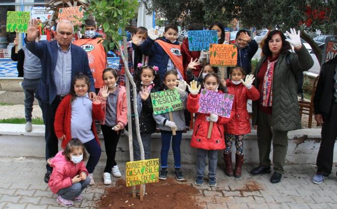 Mavi ile yeşilin buluştuğu Erdemli merkezinde, daha da yeşil hale gelmesi için ilçe belediyesi, Türkiye Erozyonla Mücadele, Ağaçlandırma ve Doğal Varlıkları Koruma (TEMA) Vakfı ve Milli Eğitim Müdürlüğü iş birliği ile yürütülen “Daha Yeşil Bir Erdemli İçin Kaldırımları Ağaçlandırıyoruz” projesi kapsamında bin adet fidan dikimi yapıldı. Etkinlik kapsamında Alata Mahallesinde, kreşten liseye kadar her yaştan 300 öğrenci, öğretmenleri eşliğine, Erdemli Belediyesi Park ve Bahçeler Müdürlüğüne bağlı ekipler koordinesinde belirlenen noktalara fidan dikti. Öğrencilerden bazıları diktikleri fidanlara can suyunu suluklarından verdi. Fidan dikimine katılan Erdemli Belediye Başkanı Mükerrem Tollu ile TEMA Vakfı Erdemli Temsilcisi Murat Başer de çocuklara eşlik ederek hep bir ağızdan orman şarkısı söyledi.