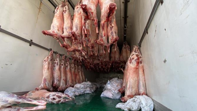 Edinilen bilgiye göre, doğu illerinden yüklediği çok miktarda etle yola çıkan 25 ACH 189 plakalı tır, Mersin’de Serbest Bölge Gişeler uygulama noktasında durduruldu.