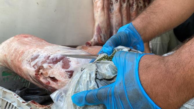 Etlerin içinden esrarlar tek tek çıkarılırken, film gibi yapılan operasyon anı ise kameralara saniye saniye yansıdı.