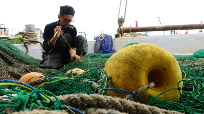 14 metrelik trol teknesi bulunan balıkçılardan Emre Balkış,” Balıkçılıkla hayatımızı idame ettirmeye çalışıyoruz, Allah nasip ettiği sürece. 4-5 gündür fırtına vardı işte, bizde sabah çıktık. Allah nasip etti çıktık. Ama balıkçılık biraz zayıf. hava şartlarından mı artık, balığın neslinden mi kaynaklanıyor, bilmiyoruz ama balıkçılığın durumu hiç iç açıcı değil işin açığı. Şuanda kalamar diye tabir ettiğimiz milletin gözünde mürekkep balığı olarak da bilinen kalamara çalışıyoruz. Biz balıkçı olarak denizlerimizi elimizden geldiği kadar temiz tutmaya çalışıyoruz. Ben avımı kaldırdığım zaman pislik çıkıyor, poşet çıkıyor biz bunları çöpe atıyoruz ama deniz kirliliği balık sirkülasyonunu çok etkiliyor, iklimler değişti. Önceden kış daha erken geliyordu, şimdi kış daha geç geliyor. Yaz değişti, yaz erken geliyordu, yaz da geç gelmeye başladı. Bunlar tabi ki faktör. Onlar çok etken oluyor balıkçılığın zayıflamasında. Elimizden geldiğince denizlerimizi temiz tutmamız lazım. Hani tek benle olmaz bu toplulukla olur, el birliği ile olur. Yavaş yavaş aşılamaya çalışıyoruz, limanımız da gördüğünüz üzere Allah’a şükür temizledik” dedi.