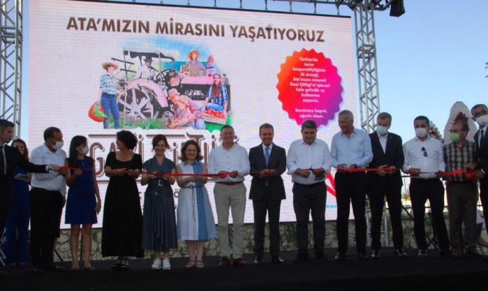 Mersin Büyükşehir Belediye Başkanı Vahap Seçer de konuşmasında, “Türkiye’de kooperatifçiliğin ilk uygulandığı yer olan Gazi Çiftliği Tarım Kredi Kooperatifi; 1936 yılının Haziran ayında, 1500 TL’lik yatırımla Atatürk tarafından kuruldu. Ulu Önderimiz, kooperatifin 1 No’lu üyesi olarak ülkemizde modern tarımın gelişmesi adına can suyunu veren ilk sermayedar olarak tarihe adını bir kez daha altın harflerle yazdı. Atatürk’ün ölümüyle beraber çiftlik günbegün terk edildi. Ziraat Teknik Okulu olarak inşa edilen bina ilkokula dönüştürülerek kullanıldı. Geride kalan yıllarda çiftlik restore edilmeye, müze haline getirilmeye çalışılsa da hak ettiği ilgiye mazhar olamamıştı. 30 Haziran 2021 tarihinde, Mersin Büyükşehir Belediyesi öncülüğünde, Silifke İlçe Milli Eğitim Müdürlüğü, Silifke Kaymakamlığı protokolüyle kadın üreticilere eğitim veren atölyelere dönüştü, yeniden hayat buldu” dedi. Konuşmaların ardından Zakkum Çiçeği Üretim Sözleşmesi imzalandı. Konuşmacılara hediye verilmesinin ardından, Gazi Çiftliğinin açılış kurdelesi kesildi. (Mersin Times)