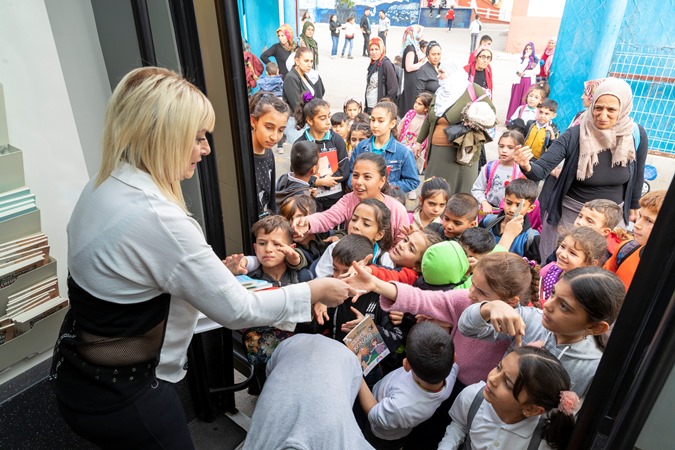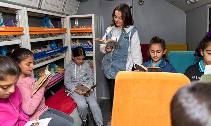 Çocuklara kitap okuma alışkanlığını kazandırmak için, Gezici Kütüphane aracıyla talep eden okullara gittiklerini ve burada eğitim gören öğrencilere; kütüphane kuralları, kütüphanenin faydaları ve kütüphane hizmetleri hakkında bilgi verdiklerini kaydeden Kültür ve Sosyal İşler Dairesi kütüphane görevlisi Sinem Sümen, “Gittiğimiz okullarda çocuklarımıza çocuk kitaplarından, öğretmenlerimize de Kültür Yayınları kitaplarımızdan hediye ediyoruz” dedi. Gezici Kütüphane aracı ile sadece okullara değil bakımevleri, cezaevleri ve kreş gibi kurumlara da gittiklerini ifade eden Sümen, “Gezici kütüphanemizde olan kitaplarımızı okuyanlar, bizim merkez kütüphanemize de gelip diğer kitaplardan alıyorlar. Bunun çocuklarımıza çok katkısı oluyor. Okudukları kitapları, arkadaşlarıyla da paylaşmayı biliyorlar” diye konuştu.