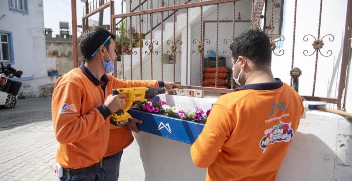 Park ve Bahçeler Dairesine bağlı ekipler, Büyükşehir Belediyesinin fidanlığında yer alan marangozhanede ürettikleri ahşap saksıları ve bankları mahallede belirlenen noktalara yerleştirdi. Büyükşehir fidanlığında yetiştirilen rengarenk çiçekler, köyün ruhuna ve evlerin dış cephesine uygun olarak mavi ve beyaz renklere boyanan ahşap saksılara yerleştirildi.