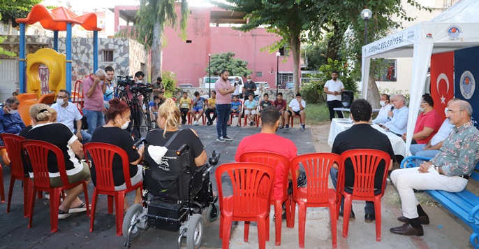 Gültak, haftalık mahalle ziyaretleri kapsamında Hamidiye Mahallesi’nde vatandaşlarla bir araya geldi. Akdeniz’de birçok parkta yenileme işlemi yapacaklarını söyleyerek konuşmasına başlayan Gültak, “Yakında ihaleye çıkılacak. Sonrasında bu parkların hepsinin birden değiştiğini göreceksiniz. Biraz sabır diyorum” şeklinde konuştu.