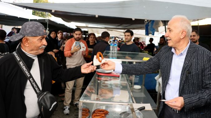 Gündoğdu Mahallesi semt pazarı ziyaretinde yoğun bir ilgiyle karşılaşan ve etrafını saran her yaştan vatandaşla sohbet eden Akdeniz Belediye Başkanı Gültak, alışveriş yapan vatandaşlara bir tepsi dolusu sıcak tatlı ikramında bulundu, ayrıca gezi boyunca geri dönüşümü mümkün alışveriş çantası hediye etti.