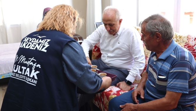 Akdeniz Belediye Başkanı Mustafa Gültak; İhsaniye, Müfide İlhan ile Yeni Mahallede yaşayan ve belediyenin sunduğu evde kişisel bakım ve temizlik hizmetinin yanı sıra, kanser hastalarına sunulan onkobüs servis hizmeti alan vatandaşları evlerinde ziyaret ederek sohbet etti, taleplerini dinledi. Kimsesiz, yaşlı ve engelli vatandaşları sık sık ziyaret edip yalnız bırakmadıklarını belirten Başkan Gültak; “Biz göreve geldiğimizde ulaşılan ev sayısı 80 iken biz ise bugün 780 ailemize ulaşıyoruz. Yaklaşık 10 kat daha fazla hane sayısına bu hizmeti veriyoruz. Bu hizmeti alan vatandaşlarımızın geliri düşükse maddi yardımda bulunuyor, gıda malzemeleri konusunda destek oluyoruz. Hastaneye ulaşım ihtiyaçları varsa Kadın ve Aile Hizmetleri Müdürlüğümüz eliyle bu hizmeti de sunuyoruz” dedi.