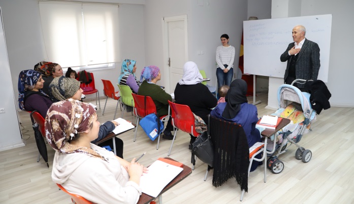 Çocuklu annelerin de kurslardan faydalanabilmesi için kreş hizmeti verdiklerini kaydeden Başkan Gültak, “Burada kurs alan kadınlarımızın çoğu anne. Çocuklarını evde bırakmak zorunda kalmıyorlar. Çünkü burada akıl ve zeka oyunları odamız ve kreşimiz de var. Çocuklarımız da burada satranç gibi oyunlar oynayarak zekalarını geliştiriyorlar ve Milli Eğitim Bakanlığımızın açtığı okullara da kendilerini hazırlamış oluyorlar. Dolayısıyla burada bir kombine var; kadınlarımız bir şeyler üretiyor ve sürekli kendilerini geliştiriyor” ifadelerini kullandı.