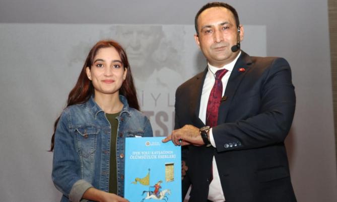 “Siyaset dehası olan bilge liderimiz, MHP Genel Başkanımız Devlet Bahçeli’nin bizzat kendi çalışmalarıyla yaptığı ve Cumhurbaşkanımız Recep Tayyip Erdoğan’a Cumhurbaşkanlığı makamında sunduğu Türk dünyası haritası Hüseyin Nihal Atsız’ın düşüncesinin, ülküsünün gerçekleşmiş halidir” diyen Yılmaz, “Bu fotoğraf Cumhur İttifakı fotoğrafıdır. Cumhur İttifakı’nın yüksek değerleri, 2023, 2053 ve 2071 hedefleri bu yüzden var. Bugün Cumhurbaşkanımız bu haritayı tüm dünyayla paylaşıyor. Bu bir meydan okumadır ve biz varız, bizim soydaşlarımız var demektir” diye konuştu. Yılmaz, sunumunun ardından gençlere Prof. Dr. Cengiz Alyılmaz’ın “İpek Yolu Kavşağının Ölümsüzlük Eserleri” adlı kitabını hediye etti. Mersin Ülkü Ocakları Başkanı Murat Sezer de programa sunduğu katkılarından dolayı Başkan Yılmaz’a plaket takdim ederek teşekkür etti. (Mersin Times)