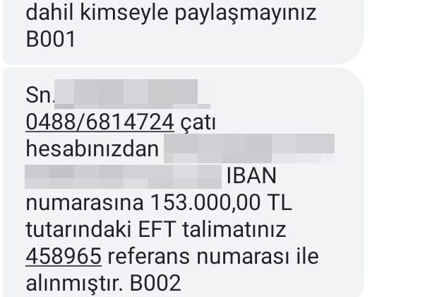 Kulakcı ve M.S. notere gittikleri sırada K.A., Kulakcı’ya bir dekont gönderdi. Dekont, K.A.’nın hesabından Kulakcı’ya 153 bin lira gönderilmiş gibi düzenlenmişti. Kulakcı, eline dekont ulaşsa da mobil bankacılık hesabına gelen bir paranın olmadığını gördü. Kulakcı ve M. S. bu sırada notere ulaştı. Kulakcı, hesabına para gelmediği için noter binasının dışına çıktı ve oyalanmaya başladı. K.A. ile temasını sürdüren Kulakcı’ya bu esnada, yine aynı kişi tarafından bankadan gelmiş gibi oluşturulan mesaj gönderildi. Mesaj, EFT talimatının yapıldığını gösteriyordu. Kulakcı gelen mesaj sonrası yine hesabına baktı. Ancak hesaba düşen bir para yoktu. M.S.’nin telkini ile Kulakcı, devir için imzayı attı. Noterden çıktıktan sonra Kulakcı bir kez daha K. A. ile irtibata geçti. Bu kişi “Banka öğlen arasına girmiş. Bugün Cuma olduğu için işler yoğun. Öğleden sonra saat 14.30’da para hesaba düşmüş olur” dedi.