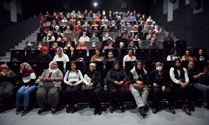 Sayapark’ta gerçekleştirilen sinema etkinliğinde kadınlar, çekimleri Silifke’de gerçekleştirilen, Sarıkeçili yörüklerin yaşamının anlatıldığı ve Mersin Büyükşehir Belediyesi’nin de destek verdiği ‘Turna Misali’ filmini izledi. 135 kadının katıldığı sinema etkinliğinde, aralarında ilk kez sinema salonunda film izleyen kadınlar oldukça heyecanlıydı.