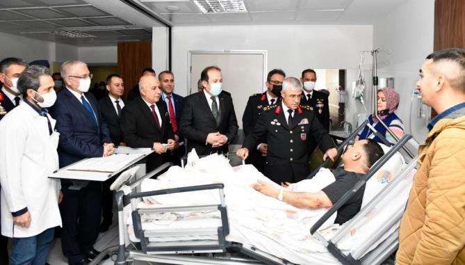 Valilik ziyaretinin ardından Orgeneral Çetin ve beraberindekiler, geçtiğimiz günlerde meydana gelen ve 2 askerin şehit olduğu elim otobüs kazasında yaralanan Jandarma Uzman Çavuş Mustafa Gül ve Jandarma Uzman Çavuş Kadir Fişne ile Mezitli Polisevi nizamiye noktasına yapılan menfur saldırıda gazi olan polis memuru Abdulkadir Öztürk’ü ziyaret etti.