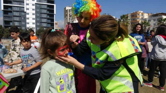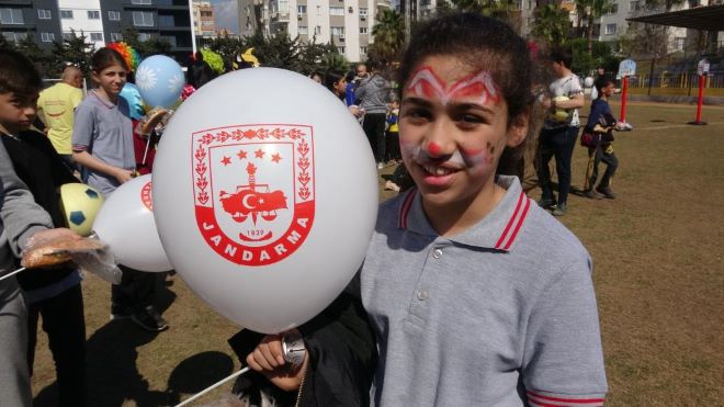 Erdemli İlçe Jandarma Komutanlığı koordinesinde Erdemli Şehir Stadı’ndaki etkinlikte depremzede çocuklar gönüllerince eğlenip moral depoladı. Etkinlikte çocukların jandarma ekipleriyle ilk buluşması renkli görüntülere sahne oldu. Motorize ekibe yoğun ilgi gösteren çocuklar motosiklete bindirildi, kask takıldı. Palyaçolar ve kadın jandarma ekiplerince boyama etkinliği de yapılırken, çocuklara çeşitli hediyeler dağıtıldı. Gönüllü gösteri ekiplerinin sunumunun ardından da toplu hatıra fotoğrafı çekildi.