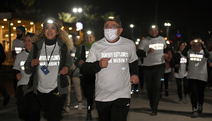 Mersin Ticaret ve Sanayi Odası’ndan koşuya katılan MTSO Hukuk Müşaviri Dilek Kurtuluş ise “Birçok sivil toplum örgütü 8 Mart Dünya Emekçi Kadınlar Günü’ne farkındalık yaratmak amacıyla bir dizi etkinlik başlattı. Dünyayı eşitlemek için yola çıktık. Bugün de ilk olarak yürüyüş yaparak hep beraber fenerlerle farkındalık yaratmayı amaçlıyoruz. Aslında biz birçok alanda eşit olduğumuzu düşünüyoruz, sorumluluklar alanında ama bugün bu konuya tekrar dikkat çekmek istiyoruz” diye konuştu.