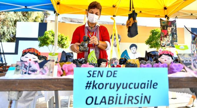 Büyükşehir Belediyesi Kadın ve Aile Hizmetleri Dairesi’nde görev alan Burcu Sert, kadınların kooperatifleşerek firmalara toplu üretim yapmaya başladıklarını ifade ederek, “Bugün hikayesi olan kadınlarla beraberiz. Aslında üretici kadınlarımızın hepsinin hikayesi bizim etkinliklerimizde başladı diyebilirim. Bizlerle tanıştıktan sonra bir eğitim sürecinden geçtiler. Eğitim sürecinden sonra tüketici ile buluştular. Şimdi bugün burada özel 52 kadınımız var. Tüm ilçelerimizden kadınlar geldi. Buradaki kadınların birçoğu çok ciddi başarılar elde etti, birçok firmaya toplu sipariş verenler var. Araçlarını yenileyen üreticilerimiz var. Aynı zamanda toplu çalışmayı öğrenip kooperatifleşme mantığında üretim yaparak diğer bölgelere satış yapan kadınlarımız var. O yüzden bugünün anlamı bizim için biraz daha farklı” dedi.