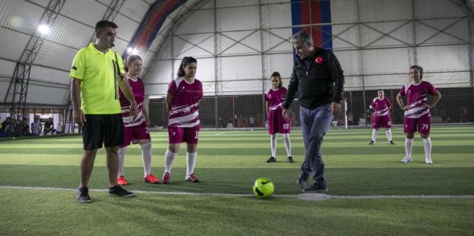 Mersin'de belediye çalışanı kadınlar, 'kadınlar futboldan anlamaz' algısını yıkmak ve kadınların haberlerde şiddetle değil başarılarıyla anılması için farkındalık oluşturmak adına katıldıkları turnuvada, halı sahanın tozunu attırdı.