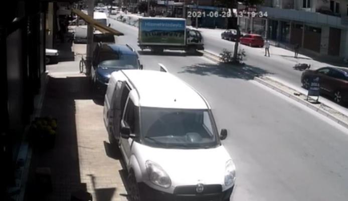 Öte yandan, olay anı bir iş yerinin güvenlik kamerası tarafından görüntülendi. Görüntülerde, yavaş yavaş geri gelen kamyonet, hızlanarak refüjü aşıp, park halindeki araca çarpıyor. Bu sırada kamyonete müdahale etmek için koşan şoför, kaza yapan motosikletliyi görünce duruyor. (Mersin Times)