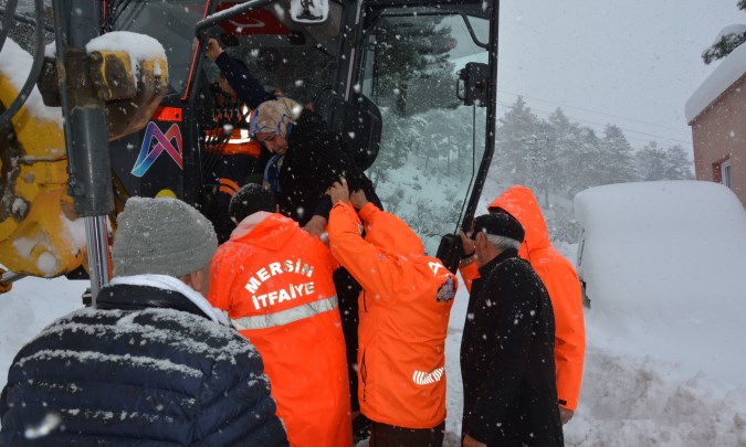 Mahalle Muhtarı Duran Ali Aslan ise “Önce Büyükşehir Belediye Başkanım Vahap Seçer olmak üzere herkesten Allah razı olsun. Mahallemin 1300 rakımlı tepesinde mahsur kalan Ahmet Babamızla Teslime Annemizi kurtardık sizlerin sayesinde. Tam 4 gündür bu insanlara ulaşım sağlanamıyor. Olduğumuz yerde 1.5 metre kar var” diye konuştu.