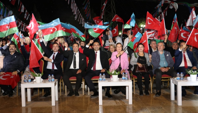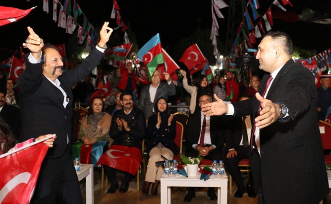 İlçedeki Anıttepe Parkı’nda düzenlenen konserde milli ve kardeşlik duyguları doruklarda yaşanırken, Azerbaycan Devlet Sanatçısı Azerin, müzik ziyafetinin yanı sıra yağmura rağmen sergilediği performansı ve orkestrasıyla sevenlerini mest etti. Türkiye ve Azerbaycan kardeşliğinin pekiştiği geceye, Türk devletlerinden eğitim almak için gelen öğrenciler de katıldı. Belediye ekipleri, konsere gelen vatandaşlara Türkiye, Azerbaycan ve KKTC bayrakları hediye etti. Birlik ve beraberlik vurgusuyla düzenlenen konser öncesinde konuşma yapan Toroslar Belediye Başkanı Atsız Afşın Yılmaz, “Karabağ Zaferi bizim için çok önemli. Bugün 2’nci yılını kutluyoruz. Bu dosyada acı var. 30 yıllık işgal var. Ermenilerin dünyanın gözünün içine baka baka uluslararası hukuka aykırı olarak 30 yıldır işgal ettiği ve kendi vatandaşlarını oraya yerleştirmeye çalıştığı Karabağ yarası var. 2 yıl önce bugün Türk ve Azerbaycan ordusu Şuşa’ya girdi.