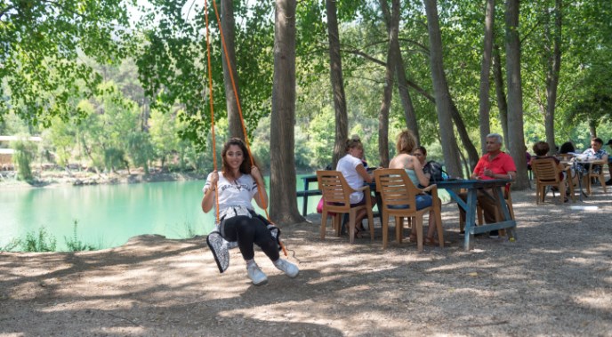 Karageçit’te yöresel olarak yetiştirdikleri ürünleri satan Fazilet Erdem, “Misafirlerimiz var Tarsus ve Mersin’den. Onlara yetiştirdiğimiz meyvelerden, sebzelerden, ürünlerden ufak-tefek satış yapıyoruz” dedi.