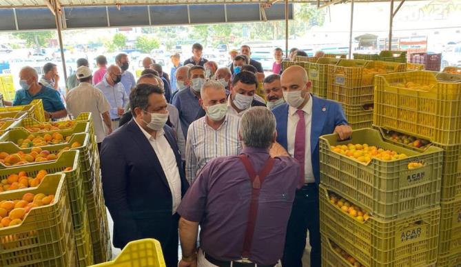 Başkan Şeker, MHP Mersin Milletvekili Olcay Kılavuz, Baki Şimşek, MHP Mersin İl Başkanı Zeynel Uğur Gölgeli, MHP Mersin İl Başkan Yardımcısı Mustafa Düzenli, MHP Mut İlçe Başkanı Alparslan Savaş Kır, MHP Kadın Kolları İlçe Başkanı Ayşe Çetin, Ülkü Ocakları Eğitim ve Kültür Vakfı Mut İlçe Başkanı Mustafa Keskin ile birlikte Mut Sebze Meyve Toptancı Halinde bulunan esnafı ve üreticileri ziyaret etti.