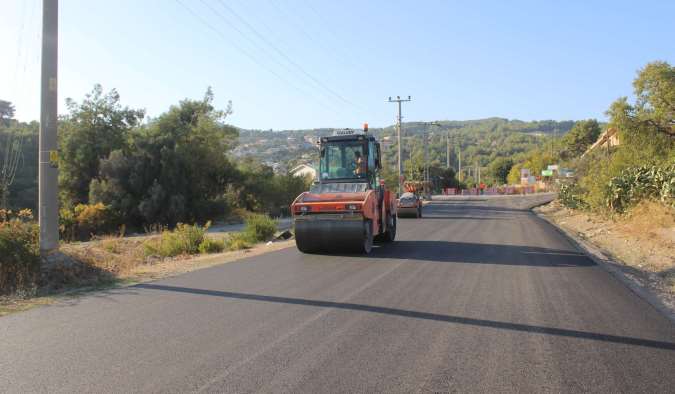 Bin 300 metrelik yolda bir süre önce yol güvenliği çalışmaları çerçevesinde zemin güçlendirme ve iyileştirme çalışması yapan ekipler, asfalta hazırlık çalışmalarının ardından sıcak asfalt serimine geçti.