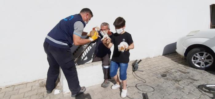 Anne kedinin yavrularını bulunduğu yerden çıkaramadığını gören Yılmaz bir veterinere gidip yardım istedi. Veteriner ise Erdemli Belediyesi’ni arayıp durumu izah etti. Fen işlerine bağlı işçiler kedilerin olduğu bölgeye yönlendirildi.