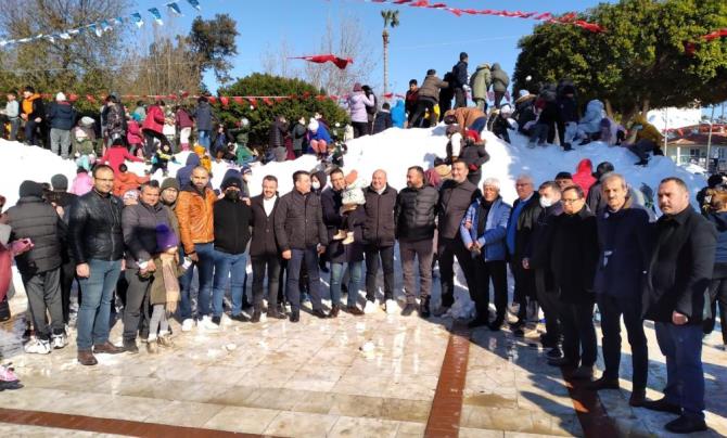 Karla oynayarak, gönüllerince eğlenen çocuklar ve Silifke Belediye Başkanı Sadık Altunok, Silifke Milli Eğitim Müdürü Mustafa Sezgin, AK Parti Silifke İlçe Başkanı Mehmet Emin Kurt, MHP Silifke İlçe Başkanı Levent Nogay, Başkan Yardımcıları Enes Buğra Genç, Eyüp Arslan eğlencenin sonunda sucuk ekmek yediler.