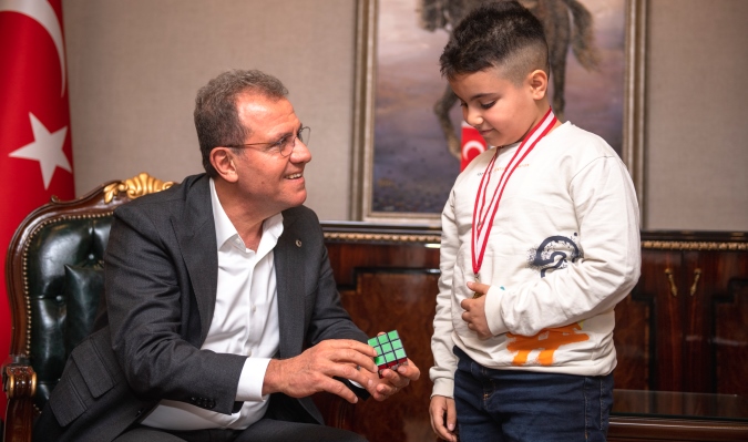 Matematikte dünya birincisi Ömer Erken, Başkan Seçer’le buluştu