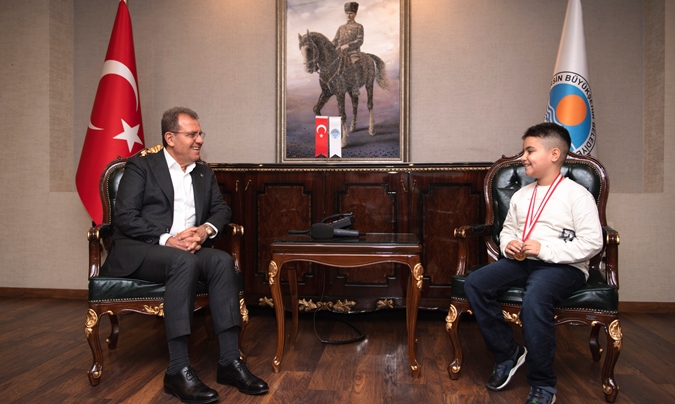 Mersin Büyükşehir Belediye Başkanı Vahap Seçer, Tarsus Atatürk İlkokulu 4. sınıf öğrencisi 9 yaşındaki dünya matematik birincisi Ömer Erken’le bir araya geldi. Online düzenlenen Uluslararası Caribou Contests Matematik Yarışması’nda bu yıl iki kez dünya birincisi olan Ömer Erken’i kutlayan Başkan Seçer, başarılarının devamını diledi.