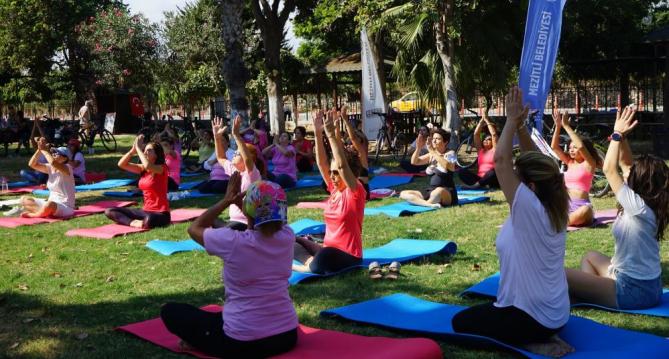 Mezitli Belediyesi, meme kanserine dikkat çekmek amacıyla Soli Pompeiopolis Parkında düzenlenen yoga etkinliğine destek verdi. Etkinliğe katılanlara meme kanseri hakkında bilgiler verildi.