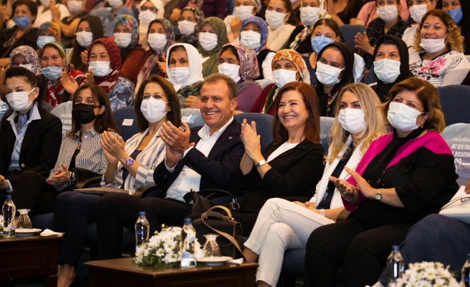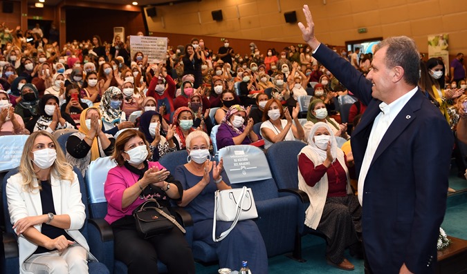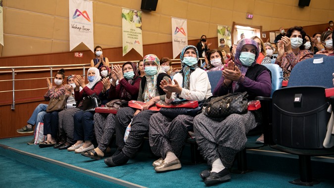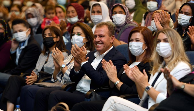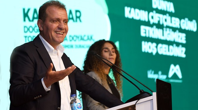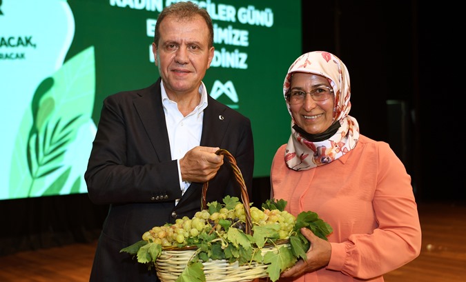 Etkinlikte konuşan Başkan Vahap Seçer, salonun enerjisinin çok yüksek olduğunu vurgulayarak, “Çünkü burada üreten insanlar var. Aslında kadın dediğiniz zaman boğazım düğümleniyor. Çok seviyorum kadınlarımızı. Ben ayrımcıyım. Ben kadınların tarafındayım, ben çocukların tarafındayım, birinin koluna girip kendisine destek olmasına ihtiyacı olanın yanındayım. Zaten güçlü ayakta duruyor, güçlünün bizlere ihtiyacı yok ama sizlerin var. Kadın çok anlam ifade ediyor. Kadın işçidir, kadın çiftçidir, kadın girişimcidir, kadın hayatın her alanında var. İşçidir, en ağır ev kadını, ev işçisi. Daha ağır iş var mı? Tarlada işçi, atölyede işçi, fabrikada işçi, bahçede, serada, ahırda, ağılda hem çiftçi hem işçi. Birkaç mesleği birden yapıyor ve girişimci” dedi.