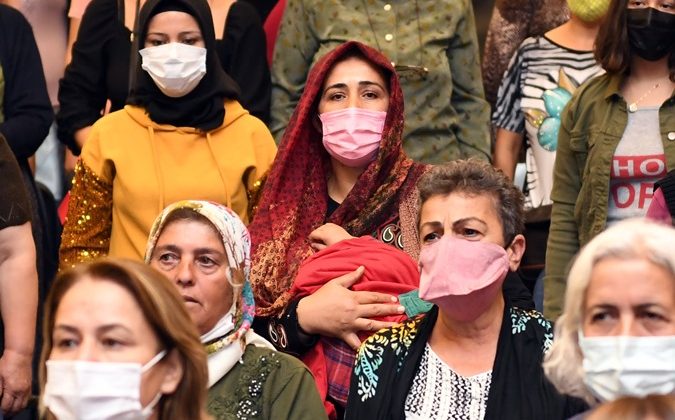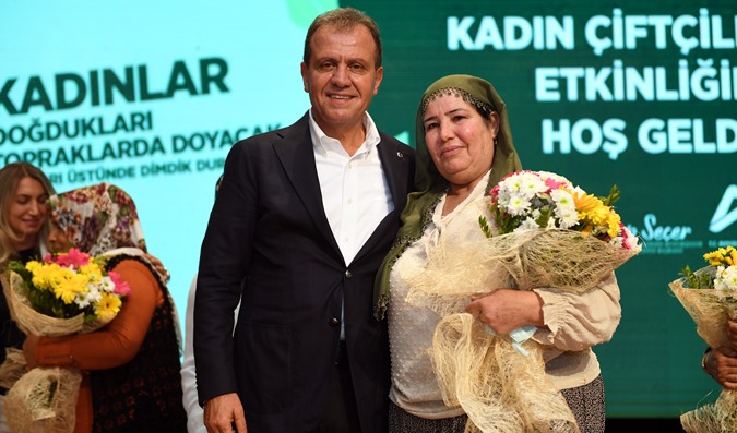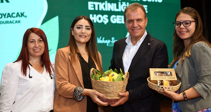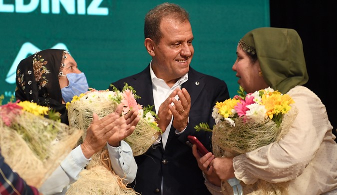 Konuşmaların ardından Başkan Seçer ve protokol üyeleri, üretici kadınlara çiçek verdi. (Mersin Times)