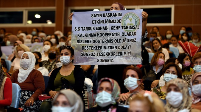 Başkan Seçer, kadınların üretime katılmasının öneminden söz ederek, “Üretim olmazsa, kırsal olmazsa, çiftçilik olmazsa biz tencereyi nasıl kaynatacağız? İstanbul’da, Ankara’da, İzmir’de, büyük metropollerde, burada yetişen ürünlerimiz, güzel Anamur’un muzu olmazsa, Silifke’nin çileği olmazsa, Tarsus’un üzümü olmazsa, domatesi, salatalığı, biberi, ıspanağı, pırasası olmazsa nasıl yemek yapacak bu kadınlarımız? İşte bunları da kadınlarımız üretiyor. Burası tarım bölgesi. Hangi köşeye bakarsınız bakın üretim görüyorsunuz, bereket görüyorsunuz. O üretimi sağlayan da bereketi sağlayan da zaten siz kadınlarımızsınız. Ben çalışandan, üretenden tarafım. Bizim üretmemiz lazım” diye konuştu.