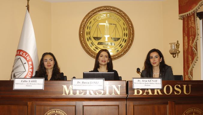 Mersin Barosu Başkanı Av. Gazi Özdemir, yönetim kurulu üyeleri, avukatlar ve baro personellerinin katılımıyla Gökdelen hizmet biriminde düzenlenen eğitim, Mersin Barosu Kadın Hakları Merkezi Başkanı Av. Arzu Günay’ın moderatörlüğünde, Toplumsal Cinsiyet Çalışmaları Uzmanı/Mezitli Belediyesi Eşitlik Birimi Sorumlusu Dr. Burcu Şanlı ve Mersin Büyükşehir Belediyesi Kadın ve Aile Hizmetleri Dairesi Müdürü Edibe Sahil ‘in sunumuyla yapıldı.