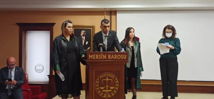Mersin Barosu Başkanı Gazi Özdemir ise, “İstanbul Sözleşmesi’nin feshedilmesi ile ilgili Cumhurbaşkanlığı kararnamesinin iptali için açtığımız dava maalesef aleyhimize sonuçlandı ama orada şöyle güzel bir gelişme oldu. Dava oy çokluğuyla aleyhimize sonuçlandı. Danıştay’da karşı oy kullanan hakimler vardı. Bu hukukçu kimliği açısından, biz o hakimlerimize teşekkür ediyoruz. Burada hala bir hukuk sistemini olduğunu ve hukuka ilişkin bir takım kazanımlarımızın korunduğunu gösterdi. Baro başkanları olarak, yaşanan kadın cinayetleri konusunda görüşmeler yaptık. Barolar olarak bu olayların üzerine gideceğiz. Kadınların korunması için bir takım yasal düzenlemelerin yeniden getirilmesi ve bunların etkin kullanılması için gerekli çalışmaları yürüteceğiz. Mersin Barosu olarak, yaşanan kadın cinayetlerinde yasal sürecin takipçisi olacağız. Failin en yüksek cezayı alması için ve kadın cinayetlerinin önlenmesi için biz her türlü çabayı göstereceğiz.” diye konuştu. (Mersin Times)