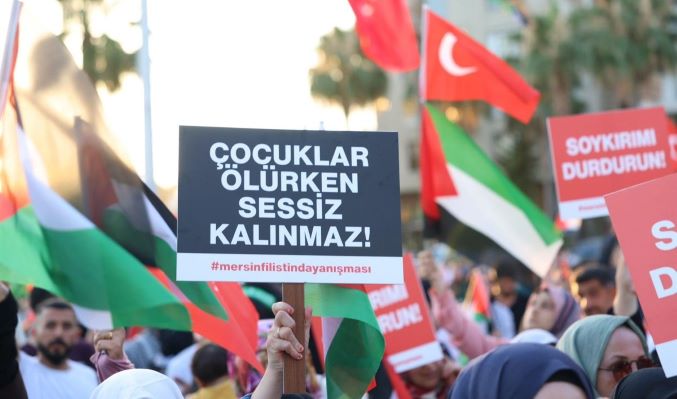 Gazze’de, İsrail tarafından 8 aydır masum insanların, yaşlıların, kadınların, çocukların hunharca katledildiği soykırıma varan saldırılara tepki göstermek, bu terör saldırılarını lanetlemek, vicdanların sesi olmak, bütün dünyayı bu zulme dur demeye çağırmak amacıyla düzenlenen ve binlerce kişinin katılım gösterdiği miting saygı duruşu ve İstiklal Marşımızın okunması ile başladı. Mersin Üniversitesi İlahiyat Fakültesi Araştırma Görevlisi M.Akif Çağlar Kur’an-ı Kerim tilaveti gerçekleştirdi.