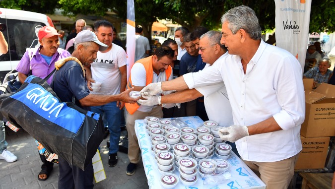 Büyükşehir’in aşure dağıtımları kapsamında yer alan Tarsus ve Çamlıyayla’da da vatandaşlara 4 bin 400 yüz paket aşure ulaştırıldı. Aşureler Tarsus merkezde Atatürk Caddesi Cetvel Köprüsü, Yarenlik Alanı PTT binası önü ve Kaymakamlık binasının karşısında bulunan meydanda yurttaşlara dağıtılırken, diğer ilçelerde de merkezi noktalarda kurulan standlarda ikram edildi. (Mersin Times)