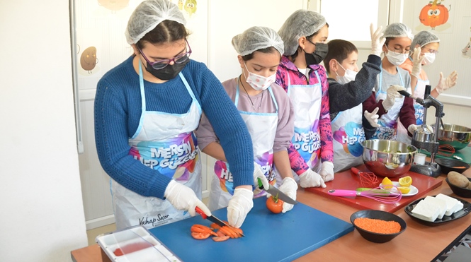 Annesiyle birlikte yemek yapmayı sevdiğini belirten bir diğer öğrenci Tuana İlayda Akyaz ise “Burada arkadaşlarımla birlikte yemek yapıyorum. Öğretmenlerim bana çok güzel şeyler anlatıyor. Yemeğe merakım var, çok güzel de yemek yaparım” ifadelerini kullandı. (Mersin Times)
