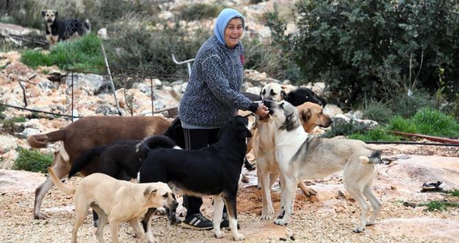 Kızkalesi Mahallesi’nin yüksek kesimlerinden Gömeç mevkiindeki besleme odağında sahipsiz 53 köpek ve 27 kediye özenle bakıp besleyen 65 yaşındaki Özyurt, memur emeklisi olduğunu söyledi. Seneler önce sahiplendiği bir kedi ve bir köpeği “Benim dünyamı değiştirdiler” sözleriyle anlatan Özyurt, “Bir tane ‘ayıcığımız’ var. Dev gibi boyu var ama pamuk gibi kalbi var. Onu kimseye sahiplendirip bırakamadım. Bırakamayınca da onlarla birlikte buradaki yaşamıma başladım. Burada yaşıyoruz” dedi.