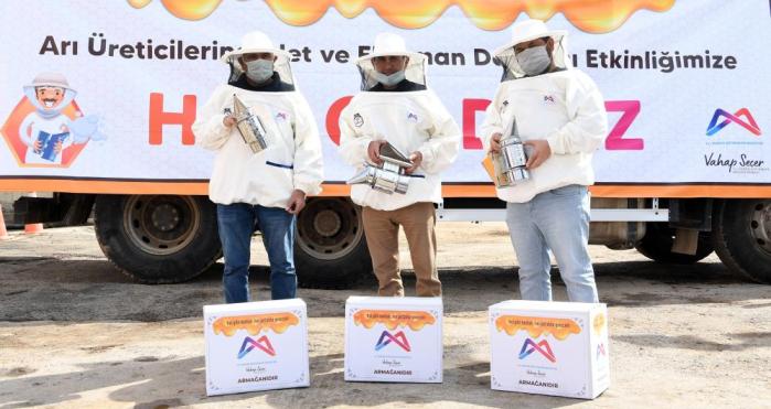 Mersin Büyükşehir Belediyesi Tarımsal ve Veteriner Hizmetleri Dairesi tarafından kent genelinde arı üretimini arttırmak amacıyla arı yetiştiricilerine her yıl ihtiyaç duydukları ekipman desteği sağlanıyor. Arı üreticileri için ‘Bal Gibi Destek, Her Petekte Gelecek’ sloganı ile yola çıkılan projenin ilk etabında Erdemli ve Silifke ilçelerindeki arı üreticilerine ekipman desteği sağlandı. İlk etapta Silifke’de 114, Erdemli’de ise 154 olmak üzere toplam 268 üreticiye ekipman verildi.