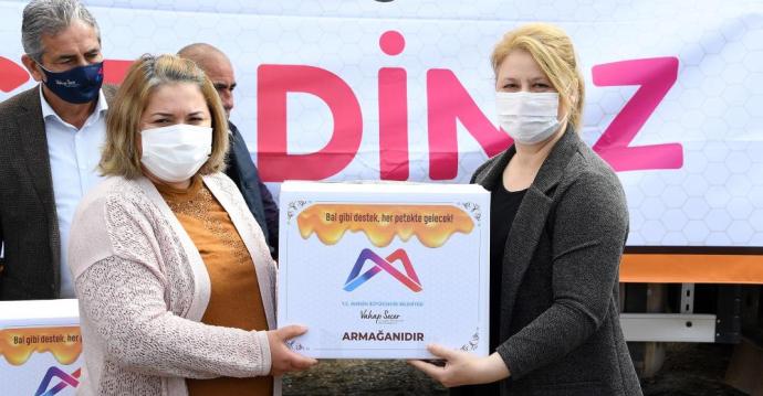 Büyükşehir Belediyesi Erdemli şantiye alanında korona virüs tedbirlerine özen gösterilerek düzenlenen törende, Erdemli ve Silifke’de arı yetiştiriciliği yapan toplam 268 yetiştiriciye ekipman desteği sağlandı. Yetiştiricilere üretim aşamasında kolaylık sağlamak amacıyla içerisinde petek, arıcı körüğü ve arıcı maskesinden oluşan koliler dağıtıldı.