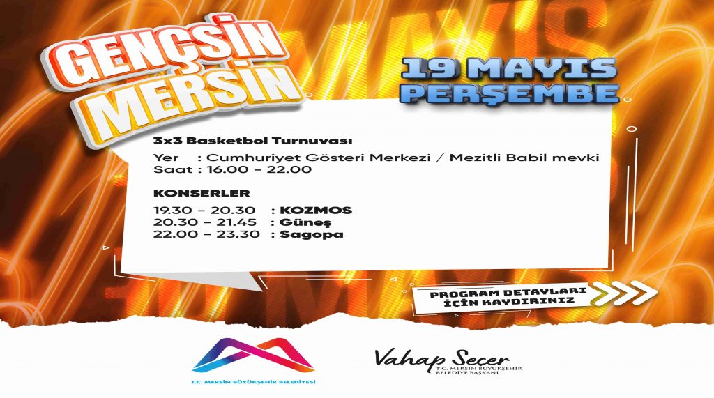 7’den 70’e sevilen rap müzisyeni Sagopa Kajmer ile yeni dönemin beğenilen ismi Sefo konserleriyle Özgecan Aslan Barış Meydanı’nda Mersinliler coşku dolu bir akşam yaşayacak. 18 Mayıs’ta Sefo’nun konseri öncesinde AG BAND ve Batuhan Şaraplı sahne alacak. 19 Mayıs’taki Sagopa Kajmer konseri öncesi KOZMOS ve Güneş şarkılarını seslendirecek.